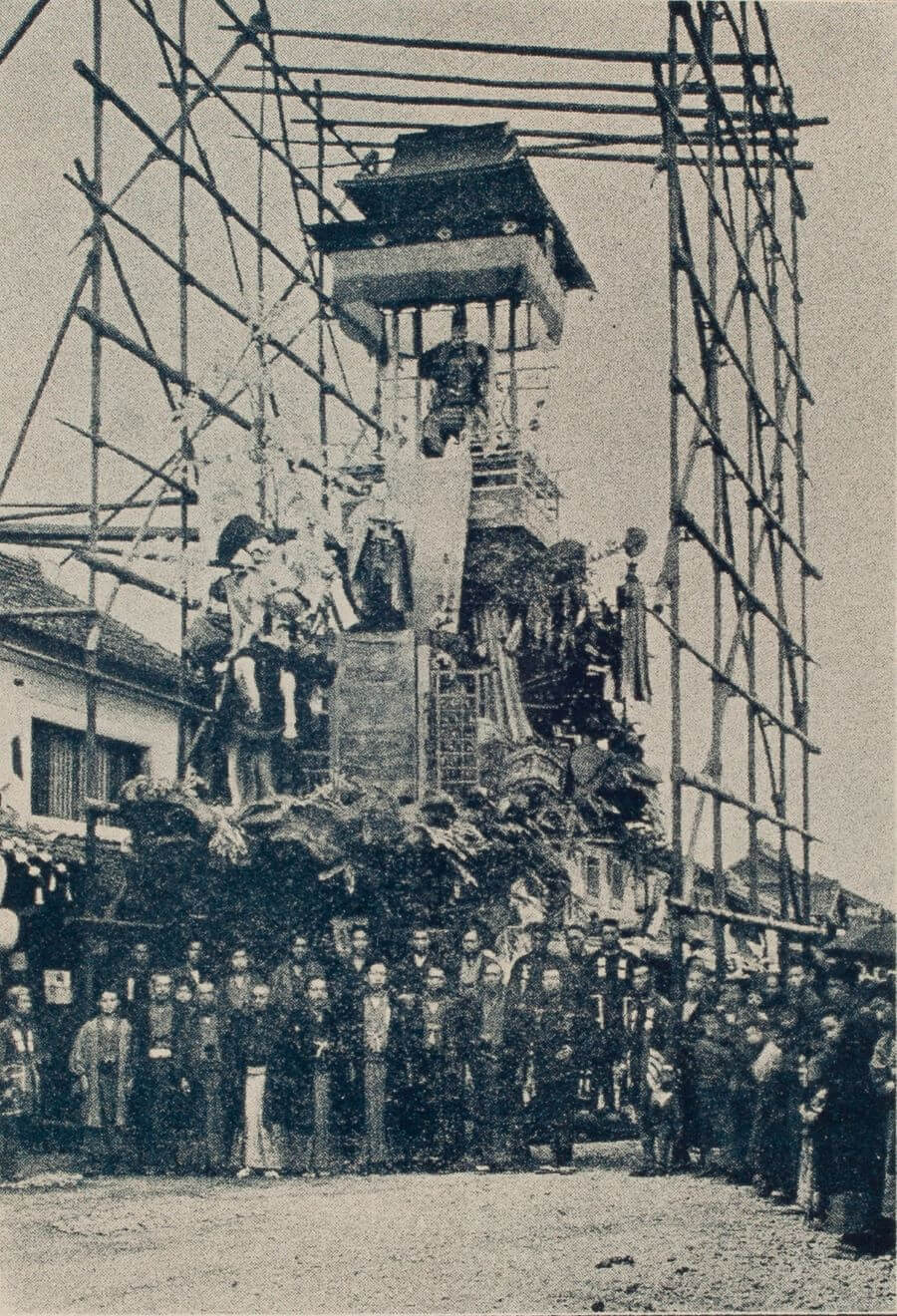 盛況を誇った仙台祭も幕末・維新の混乱を経て、東照宮例祭に山鉾がでることはなくなりましたが、明治4年(1871)の天長節(明治天皇の誕生日)に24台の山鉾が出たのを始め、藩祖伊達政宗公を祀る神社として明治7年(1874)に創建された青葉神社例祭(政宗公の命日である5月24日に開催)や招魂祭など、明治時代に8回ほど山鉾が出た記録があります。